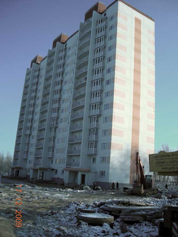 Трехсекционный 14-этажный жилой дом возводится по индивидуальному проекту и рассчитан на 156 квартир.